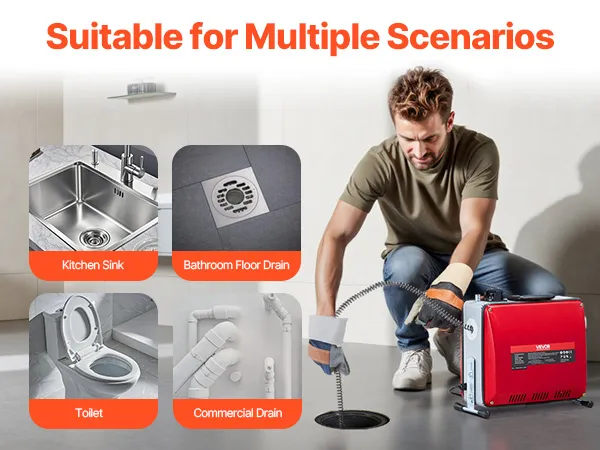 Utilizzo multifunzionale: questo pulitore elettrico per scarichi fognari è adatto per l'uso in lavandini, docce, fognature, servizi igienici, bagni, cucine e scarichi a pavimento, offrendo soluzioni versatili per un'ampia gamma di applicazioni