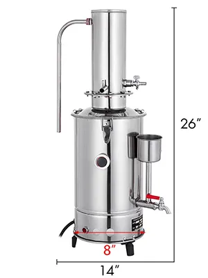 Corpo in acciaio inossidabile e imbarcazioni raffinate, il distillatore d'acqua è resistente alla corrosione, all'invecchiamento e alla lunga durata.