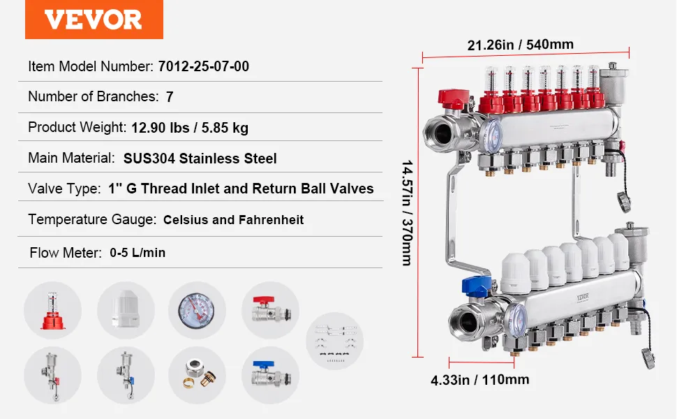 Scegli il collettore di calore radiante a 7 rami VEVOR per un riscaldamento rapido e affidabile. Con una portata fino a 5 L/min, fornisce calore rapido e costante in tutto lo spazio. La struttura in acciaio inossidabile SUS304 offre un'eccezionale resistenza alle alte temperature.