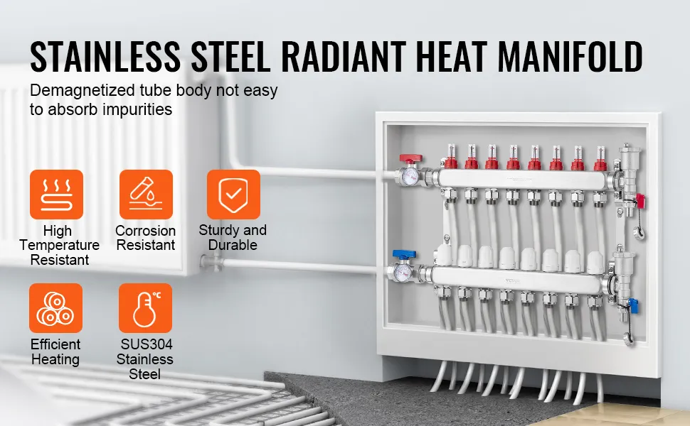 Costruito per durare: il collettore per tubi pex VEVOR è realizzato in acciaio inossidabile 304 durevole, resistente alle alte temperature, alla corrosione e alla pressione. Mantiene la sua forma e integrità per un uso a lungo termine, offrendo una maggiore conduttività termica.