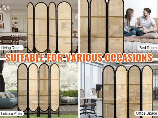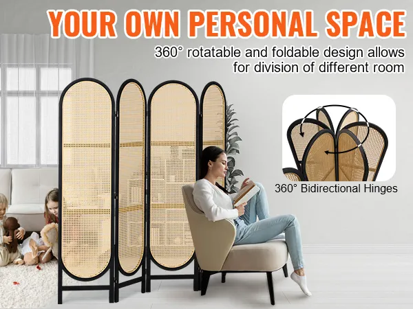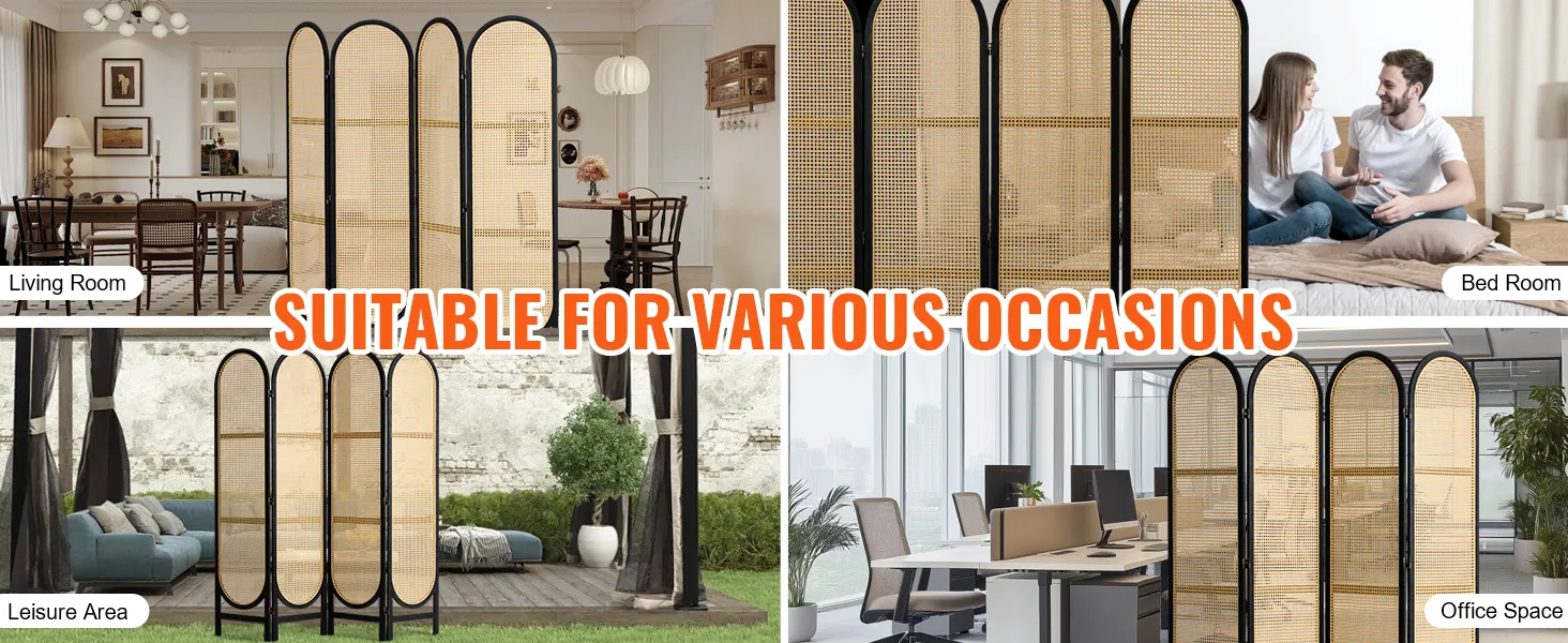 Divisorio classico intrecciato: questo divisorio è composto da 4 pannelli con uno stile moderno, che offrono un'ampia area di privacy per il tuo spazio. Intrecciato a mano con strisce di rattan, presenta linee pulite e nitide, che lo rendono un perfetto mix di schermo per la privacy ed elemento decorativo.