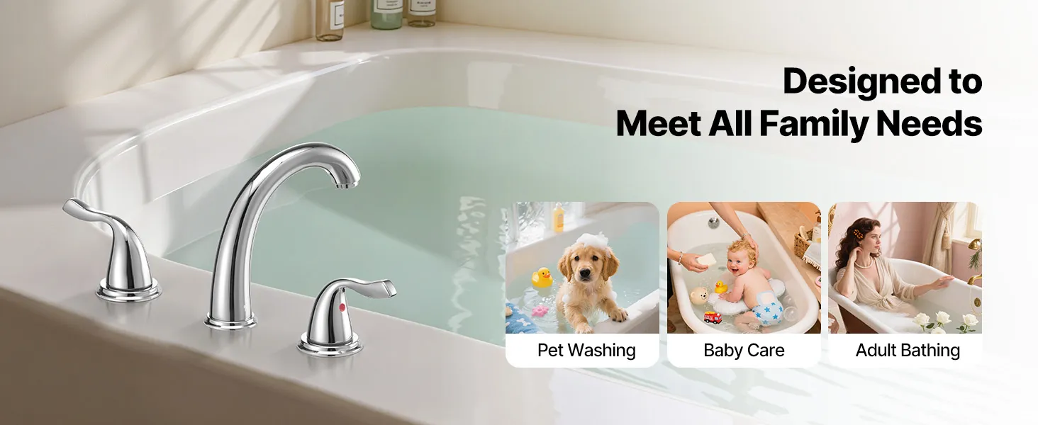 Progettato per la routine quotidiana, questo set di rubinetti è adatto a famiglie multigenerazionali. Che si tratti di lavare gli animali domestici, fare il bagno agli adulti o prendersi cura dei neonati, si adatta facilmente e aggiunge comfort ai tuoi rituali quotidiani.