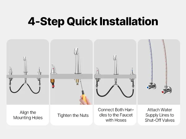 Con una portata potente di 8,3 l/min, questo rubinetto riempie una vasca da bagno da 151L. Il suo attacco a 3 fori si adatta alla maggior parte delle vasche da bagno e il corpo in acciaio inossidabile evita la ruggine e scolorimento.