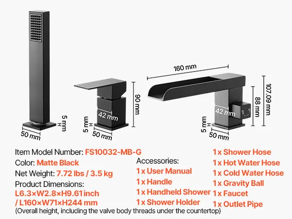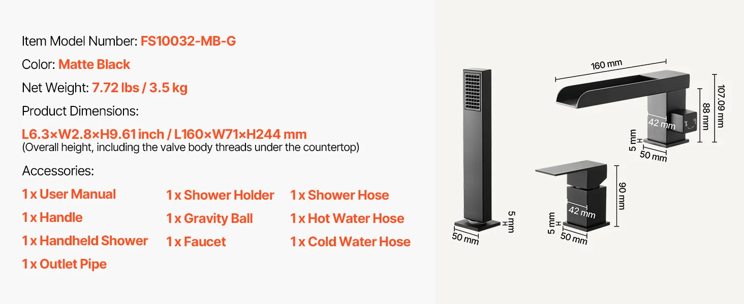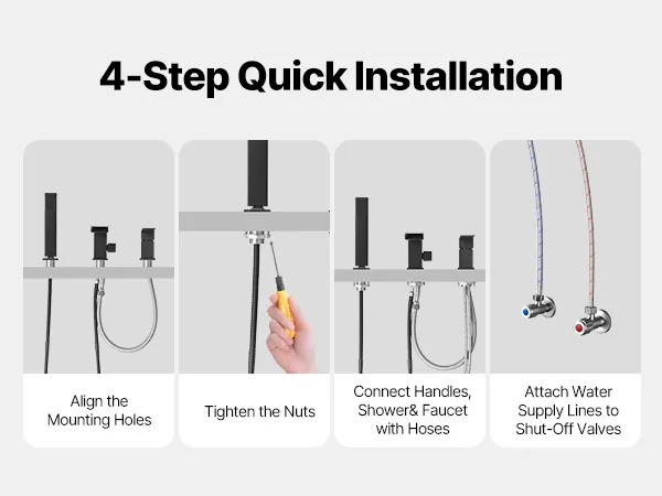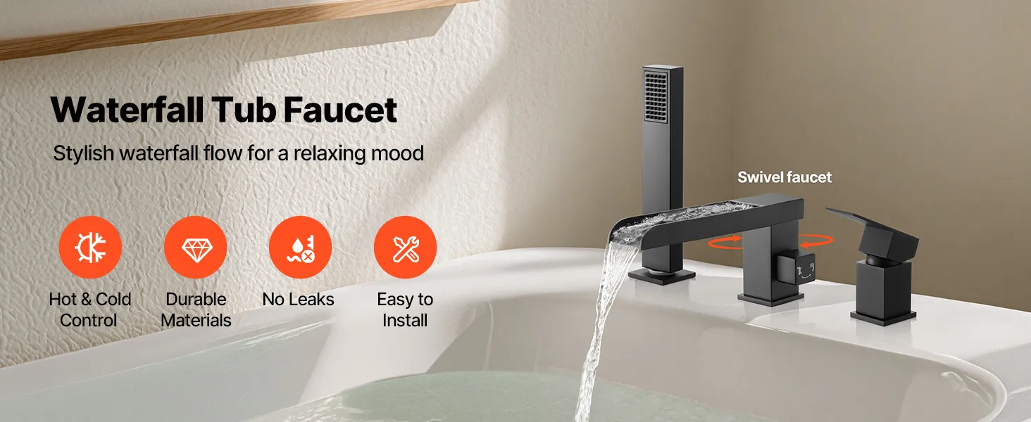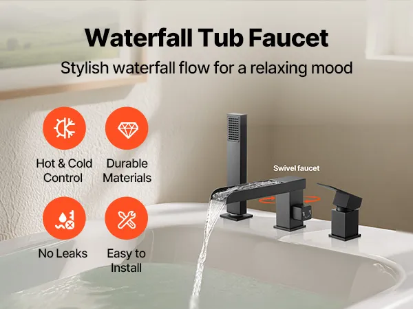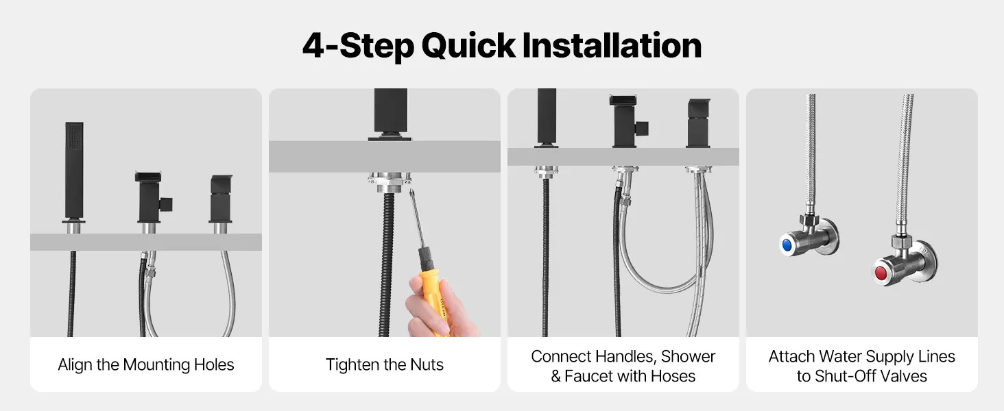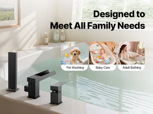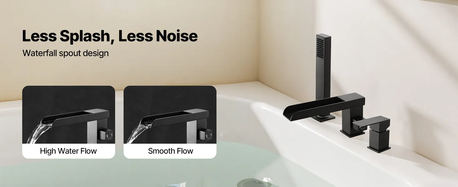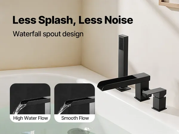 Design di montaggio a 3 fori: questo rubinetto per vasca è progettato per una facile installazione e supporta il montaggio a 3 fori sul piano vasca. Si adatta a diametri di fori da 33 a 37,84 mm e spessori del piano vasca da 10,16 a 35,56 mm