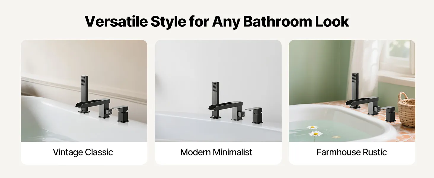 Questo rubinetto per vasca da bagno in stile romano, con il suo design elegante e versatile, si abbina perfettamente a una vasta gamma di stili d'arredo, dal minimalismo moderno al classico vintage o ai bagni in stile rustico.