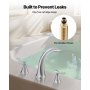 VEVOR Rubinetto per Vasca da Bagno Romano, Set con 2 Maniglie e 3 Fori, Rubinetto Miscelatore in Acciaio Inox Spazzolato, con Beccuccio ad Arco Alto per Montaggio su Ponte, Controllo della Temperatura