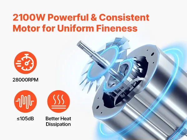 Macinazione potente ad alta velocità: il mulino elettrico utilizza un motore da 28.000 giri/min per trasformare gli ingredienti secchi in polvere fine in 30 secondi. Le sue triple lame in acciaio inossidabile garantiscono una macinazione più fine