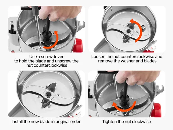 Processo di macinazione rapida in quattro fasi: il mulino elettrico completa la macinazione in quattro semplici passaggi: aggiungi gli ingredienti, chiudi coperchio, imposta il tempo e versa, rendendolo facile da usare anche per i principianti