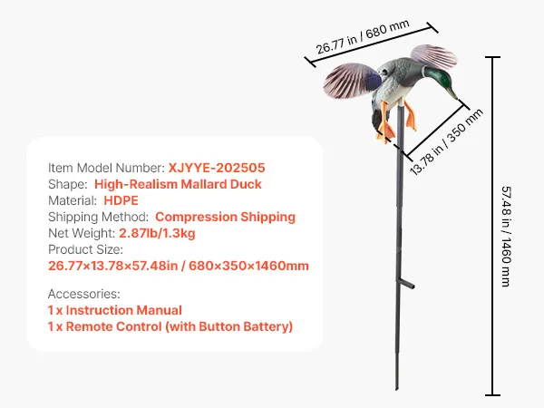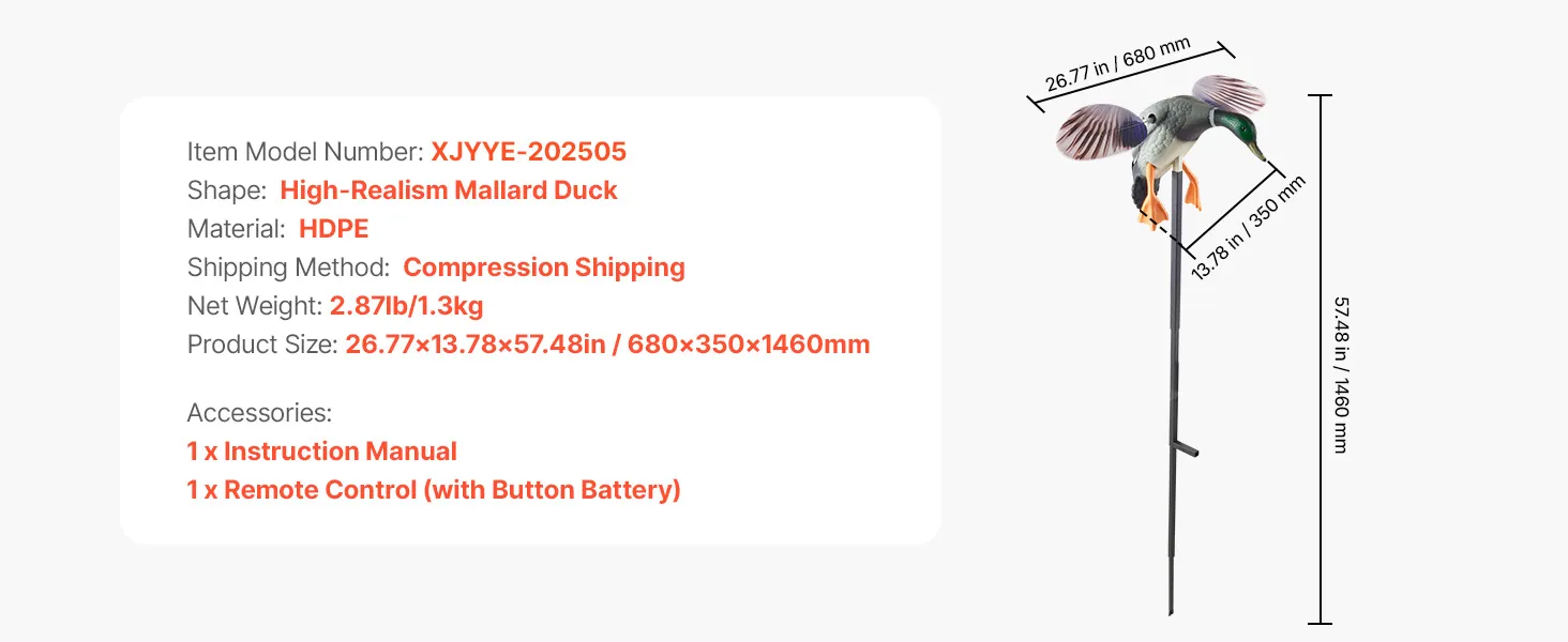 È facile da controllare tramite telecomando a infrarossi e il manubrio è stabile. La batteria AA garantisce una lunga durata e lo rende ideale per la caccia all'aperto per attirare le prede.