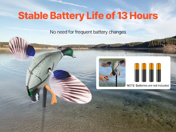 Batteria a lunga durata: compatibile con 4 batterie AA standard (NOTA: non incluse), l'esca può funzionare ininterrottamente fino a 13 ore. Non sono necessari caricabatterie o batterie speciali