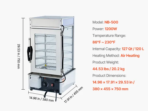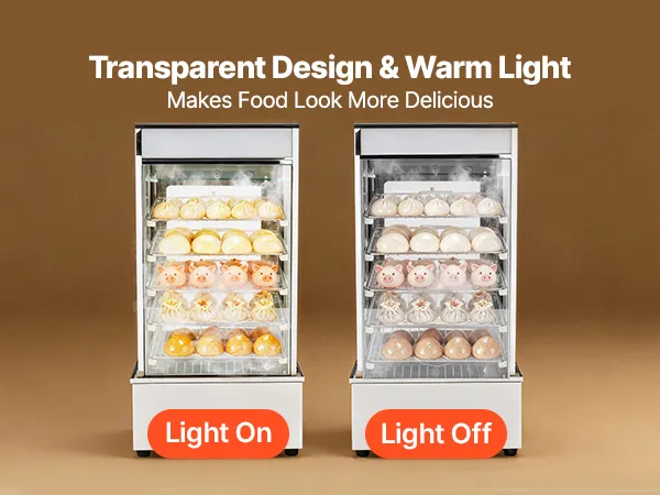 Questa vetrina elettrica per panini al vapore combina cottura a vapore, riscaldamento e presentazione in un'unica unità. Realizzata in acciaio inox e vetro temperato, offre resistenza e visibilità ottimali, mantenendo i panini umidi e freschi grazie al riscaldamento a vapore.