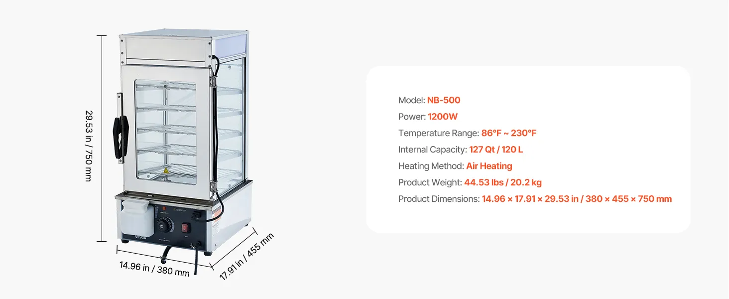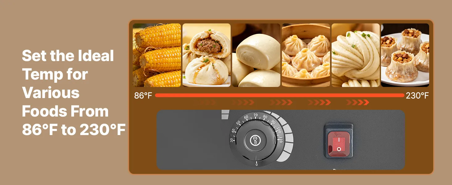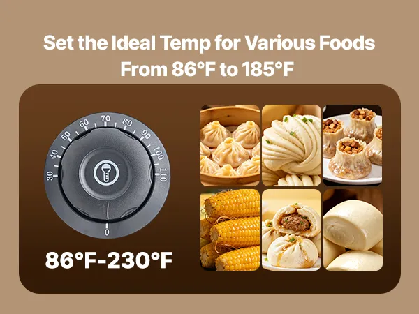 Controllo della temperatura tramite manopola: la manopola facile da usare consente una regolazione precisa da 86 a 230 °F (30-110 °C), ideale per riscaldare panini surgelati o freschi, dim sum e altri cibi al vapore