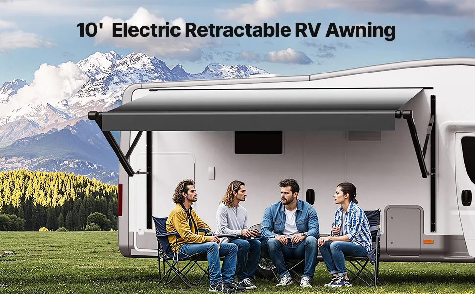 Tendalino elettrico per camper Dimensioni: offriamo una tendalino retrattile ideale per il tuo camper. Questo modello da 10 x 8 piedi (tessuto 9'2") ha un'altezza del telaio di 5,5 piedi. Con 7 dimensioni disponibili, è facile trovare una soluzione adatta al tuo camper