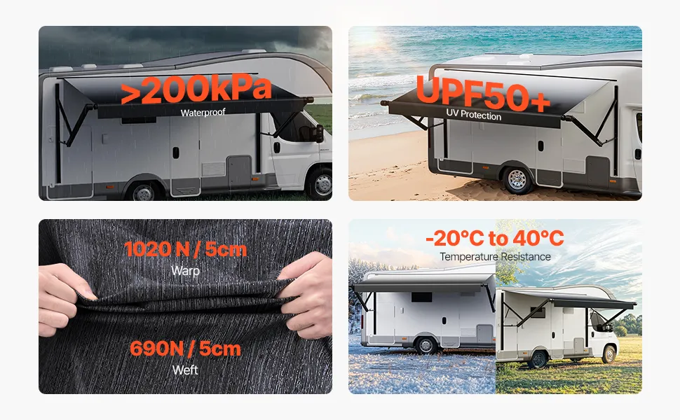 Impermeabile, resistente al sole, antistrappo e alle intemperie, la tenda da sole per rimorchio è ideale per le attività all'aperto in tutte le stagioni. Grazie a queste caratteristiche, la tua famiglia può godere di ombra affidabile e protezione indipendentemente dalla stagione.