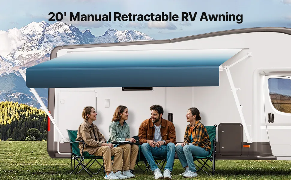 VEVOR Tenda da Sole di Ricambio Impermeabile in Vinile per Camper, Tenda da Sole Retrattile Modulare con Telaio in Lega di Alluminio, Blu Sfumato, Manuale 6096 mm Adatta Maggior Camper