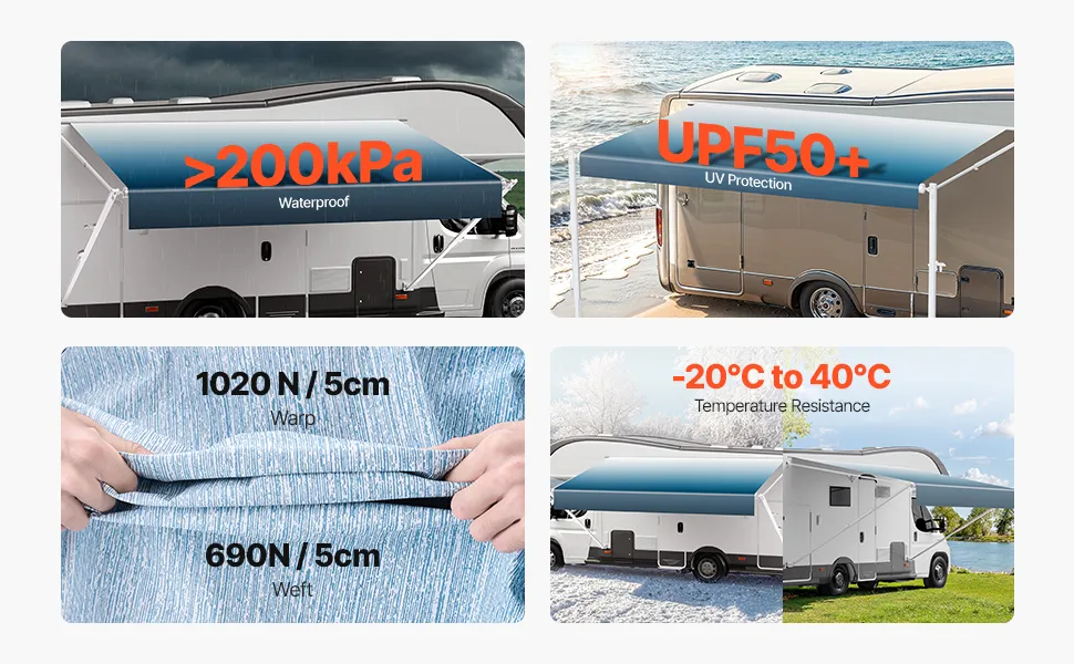 Impermeabile, resistente al sole, antistrappo e alle intemperie, la tenda da sole per rimorchio è ideale per le attività all'aperto in tutte le stagioni. Grazie a queste caratteristiche, la tua famiglia può godere di ombra affidabile.