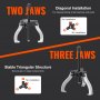The puller features two 3/7-inch jaws. The flexible jaw changer allows for quick switching between two- and three-jaw modes for increased pulling power and stability. The reversible jaw design ensures a secure grip on both small and large components.