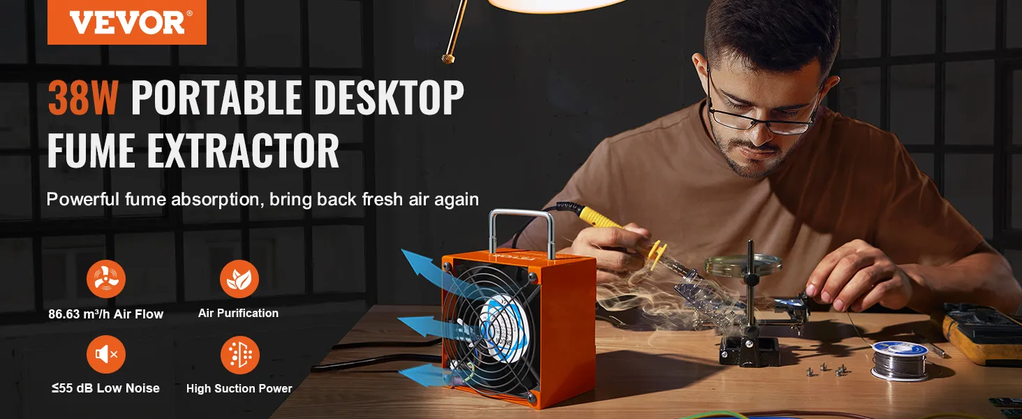 VEVOR Aspiratore Fumi per Saldatura da Tavolo Fai-da-te Potenza 38W Filtro a 3 Strati 86,63 m³/h, Assorbitore Fumi di Saldatura per Riparazione Fai-da-te, Estrattore Fumi Saldatura Progetto Fai-da-te