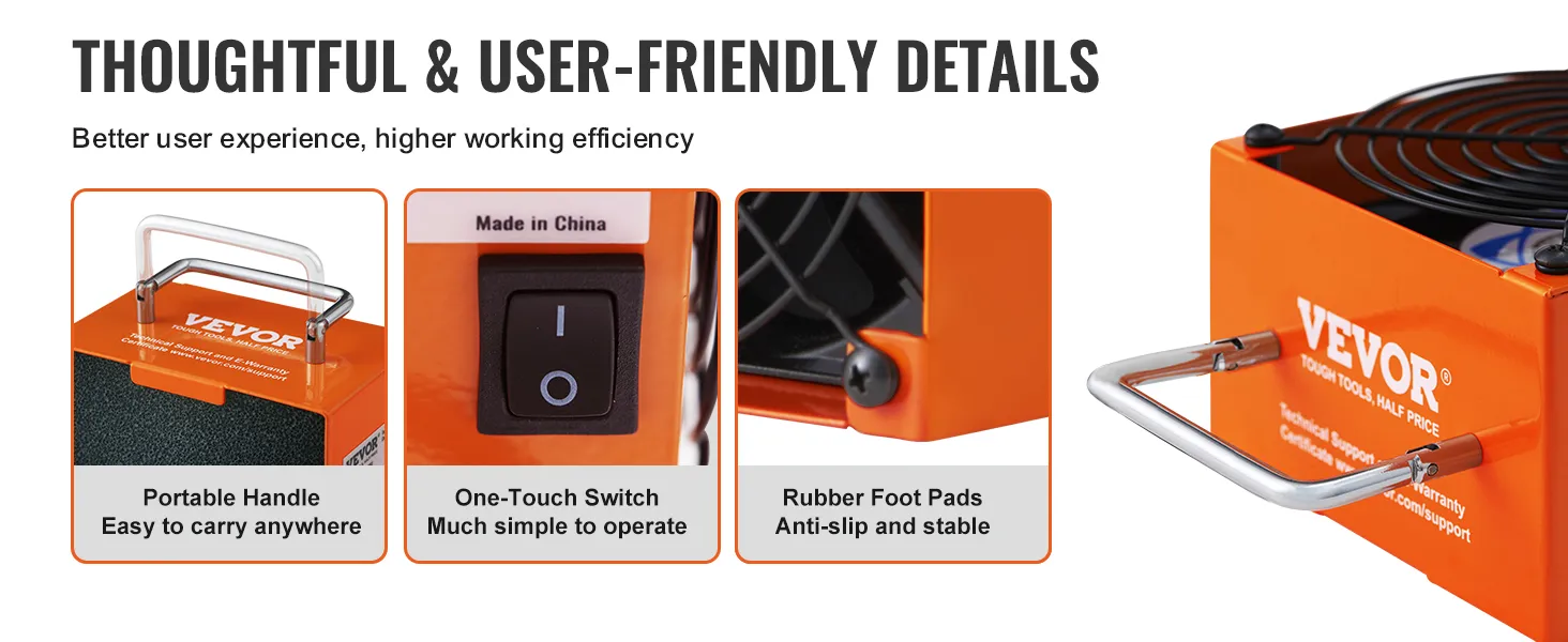 Potente Aspirazione da 38 W: respira in tutta tranquillità durante i tuoi lavori di saldatura grazie all'aspiratore di fumi di saldatura VEVOR! Il suo potente motore da 38 W crea un potente flusso d'aria di 86,63 m³/h per eliminare il fumo nocivo da una distanza di 5-6 pollici (circa 12,7-15,2 cm), funzionando a una bassa rumorosità di ≤55 dB. Niente più inalazioni di fumo nocivo e creazione di un ambiente di lavoro mirato e sano.