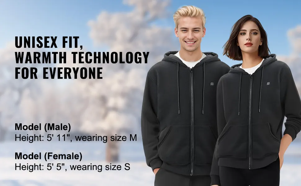 VEVOR Felpa con Cerniera Cappuccio Riscaldata, Felpa Riscaldata Unisex con Batteria 7,4 V, Giacca Elettrica con 5 Zone di Riscaldamento, Maglione Leggero e Caldo per Campeggio, Felpa Taglia S, Nero
