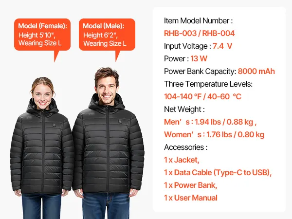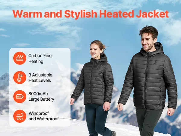 Design leggero: con un peso di soli 7,7-8,6 kg (batteria inclusa), questa giacca invernale riscaldata è calda ma leggera, consentendo movimenti flessibili e riducendo la necessità di indossare strati spessi quando fa freddo