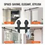 Sliding system with 2-piece tracks: The VEVOR 244 cm I-shaped sliding door hardware comes with 2-piece tracks, making installation exceptionally easy and secure. This robust sliding door hardware securely holds the track without wobbling, while the low-profile design requires less space above the door, making it both stable and space-saving!