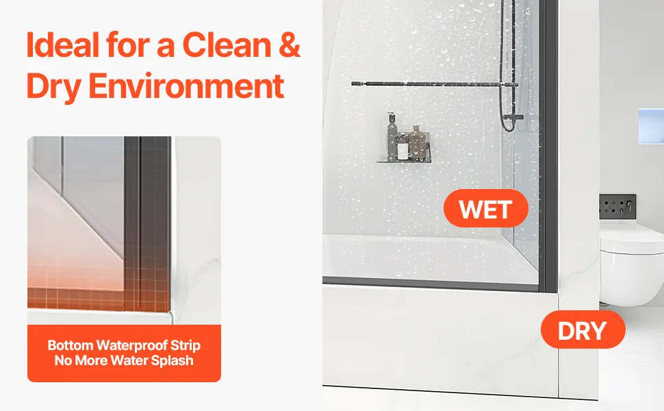 Disegno delle perdite: dotata di strisce impermeabili di alta qualità nella parte inferiore, questa mezza porta doccia per vasca da bagno crea un'ottima tenuta per evitare perdite, mantenendo il pavimento del bagno asciutto e sicuro