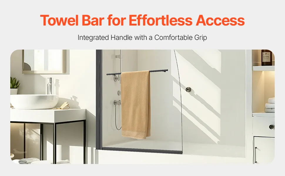 Questa porta per vasca in vetro temperato è dotata di un design con maniglia integrata con uno stile elegante e minimalista e una presa comoda, che assicura un'esperienza fluida quando si apre e si chiude la porta. Funziona anche come un pratico portasciugamani.