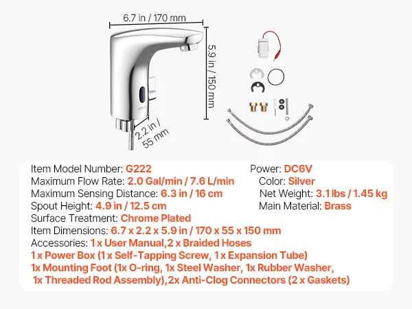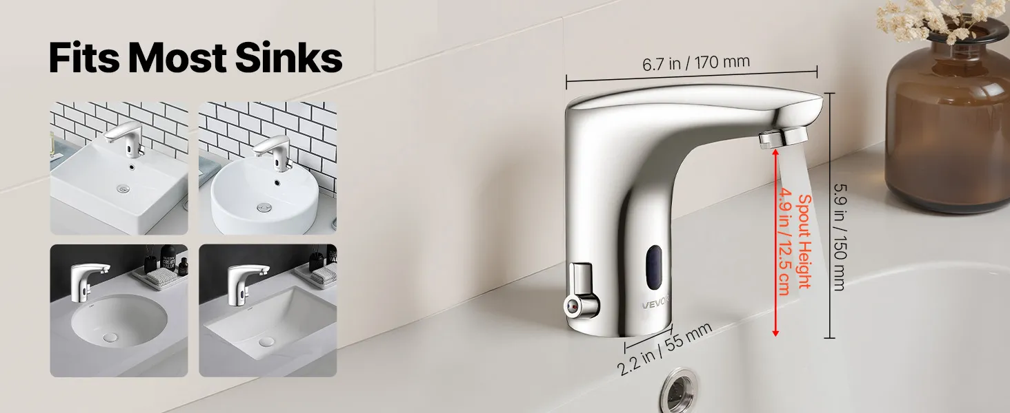 Elevata compatibilità: questo rubinetto touchless presenta dimensioni di installazione standard, rendendolo compatibile con la maggior parte dei marchi di lavelli più comuni. Che tu stia sostituendo i tuoi apparecchi, si integra nel tuo sistema