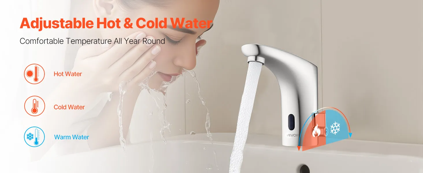 Questo rubinetto per lavello consente di regolare l'acqua calda e fredda, garantendo la temperatura ideale tutto l'anno, ideale per tenere le mani al caldo sia in estate che in inverno.