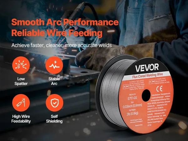 Saldatura sicura senza gas: goditi una saldatura senza problemi, senza pesanti bombole di gas. Il nostro filo per saldatura autoprotetto elimina il problema del vento che disperde il gas di protezione, garantendo una qualità di saldatura stabile
