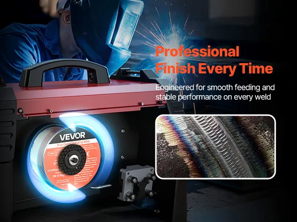 Alimentazione del filo fluida: il filo per saldatura MIG senza gas garantisce un'elevata alimentabilità del filo per un'alimentazione fluida, riducendo al minimo rotture del filo, grovigli e tempi di fermo per un funzionamento più efficiente