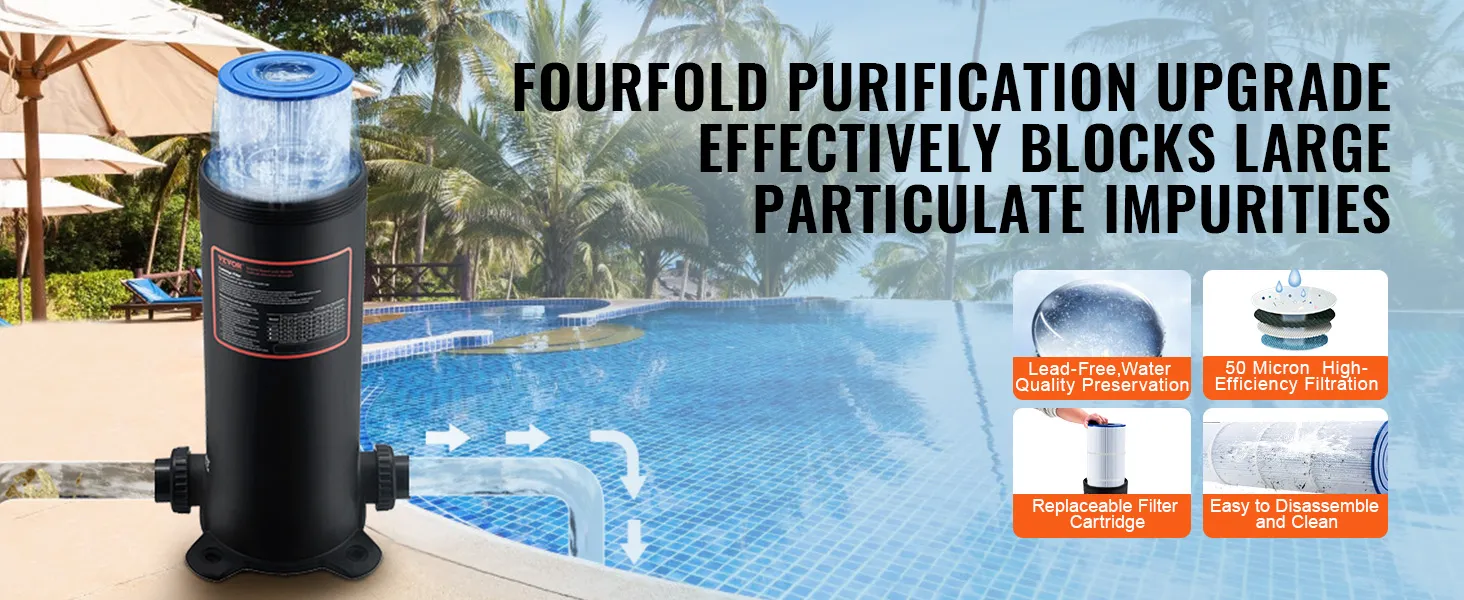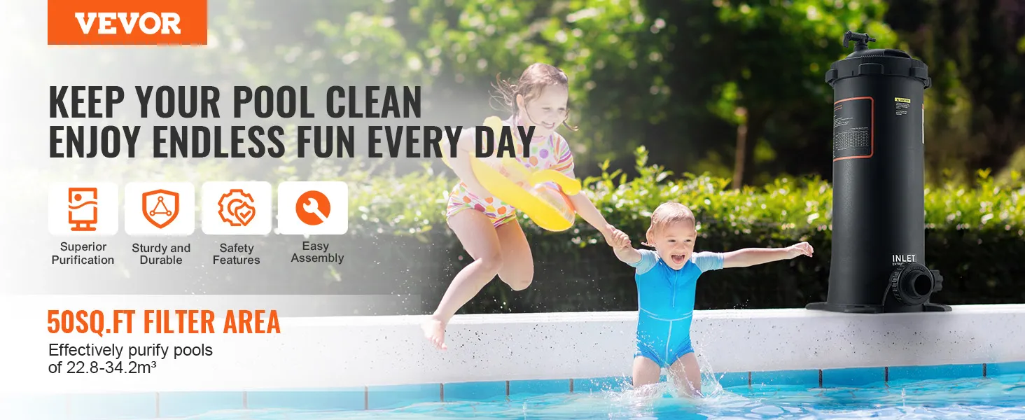 VEVOR Filtro a Cartuccia per Piscine, Sistema di Filtraggio per Piscine Interrate da 4,6 m² con Filtro Anti-perdita per Filtraggio di SPA Piscine Gonfiabili