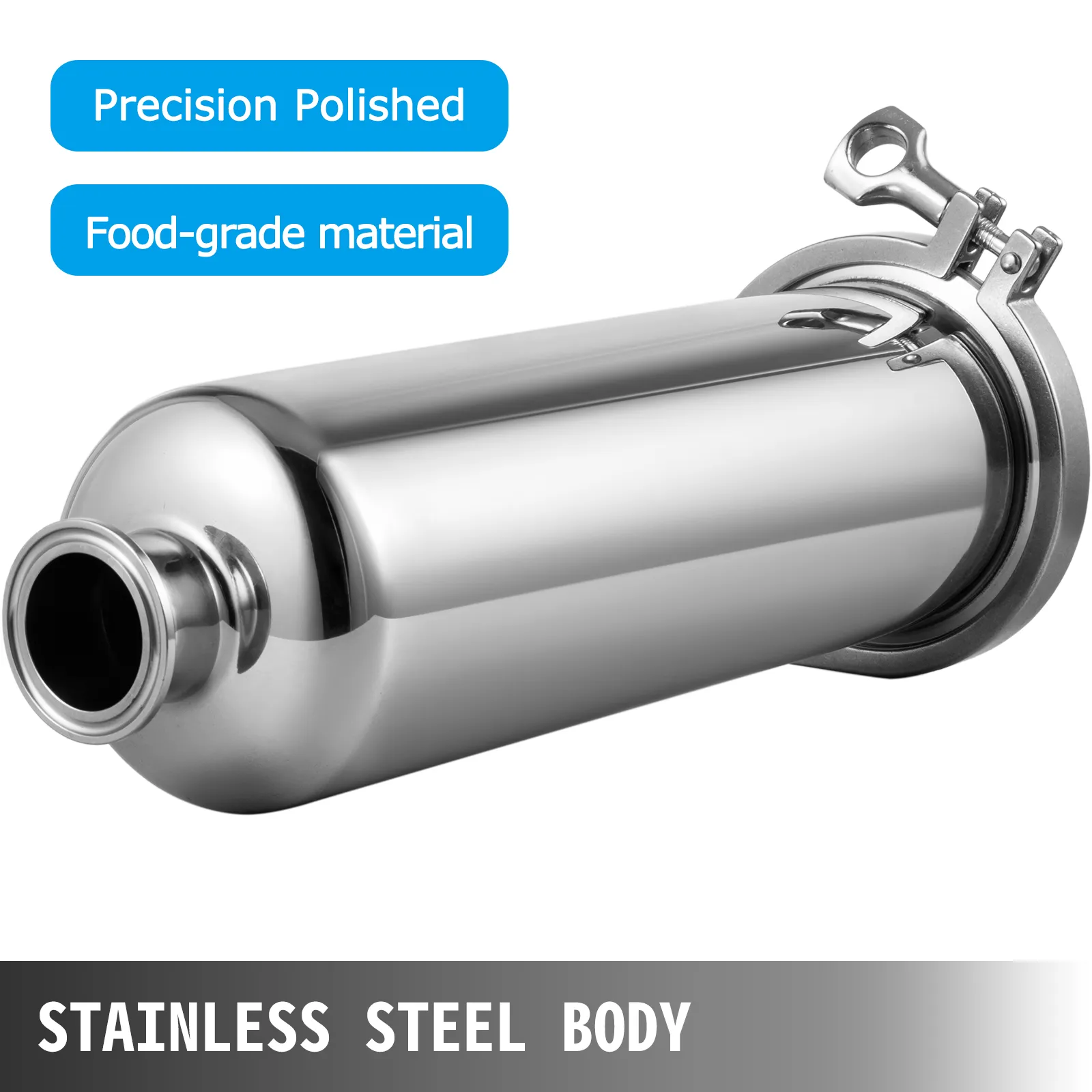 L'alloggiamento, il tubo del filtro con filtro a rete da 100 mesh e il morsetto triplo sono realizzati in acciaio inossidabile resistente alla corrosione, quindi è durevole. Sia la superficie interna che quella esterna sono lucidate per ottenere una finitura a specchio, mantenendo professionalità e aspetto estetico.