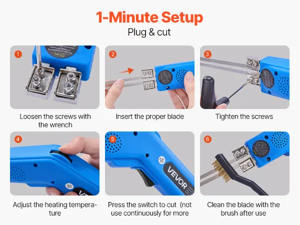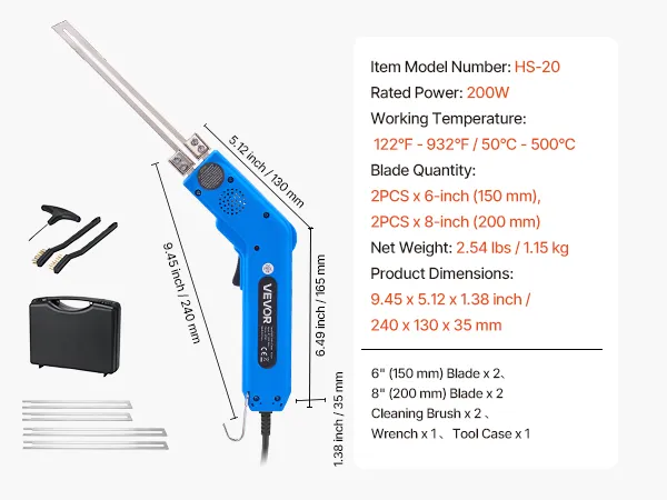 Kit di accessori completo: il nostro taglierino per polistirolo a lama calda include due lame dritte da 150 mm, due lame dritte da 200 mm, una chiave inglese, due spazzole per la pulizia e una cassetta degli attrezzi