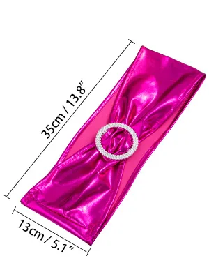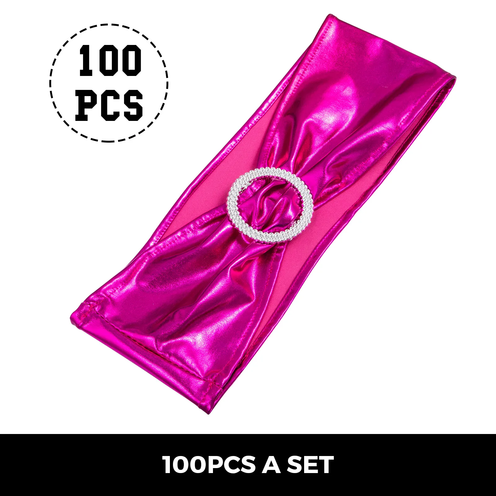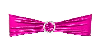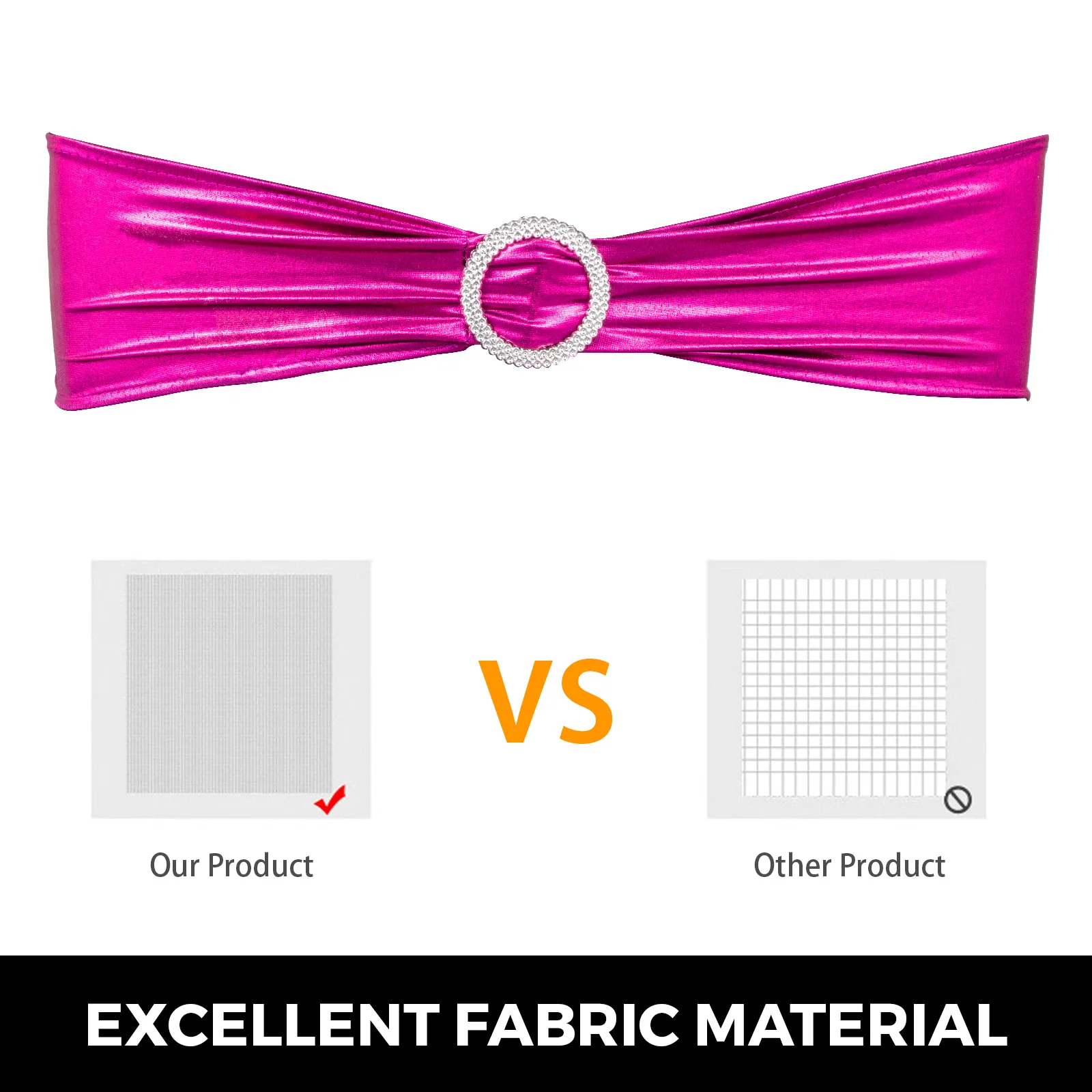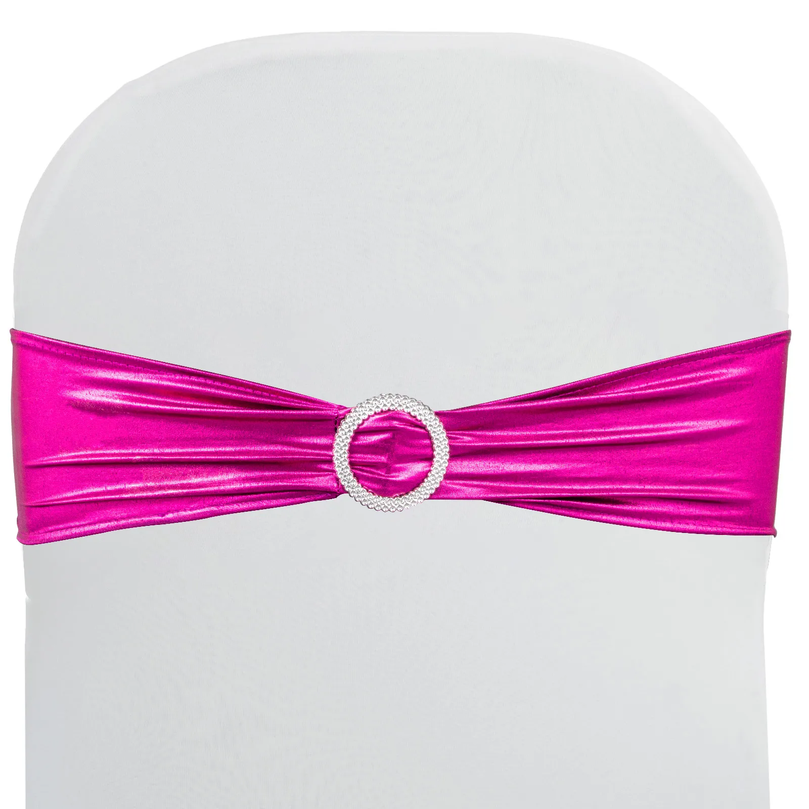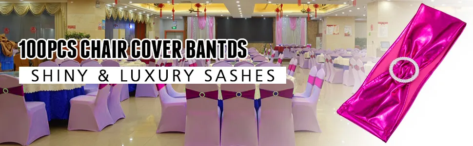 Ogni fascia della copertura della sedia è con un cursore argento fibbia rotonda. Che può essere spostato ma non rimosso. Aspetto brillante, aggiungi decorazioni speciali.