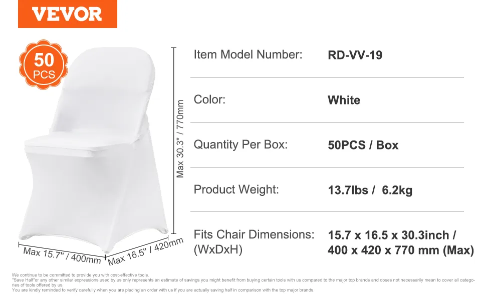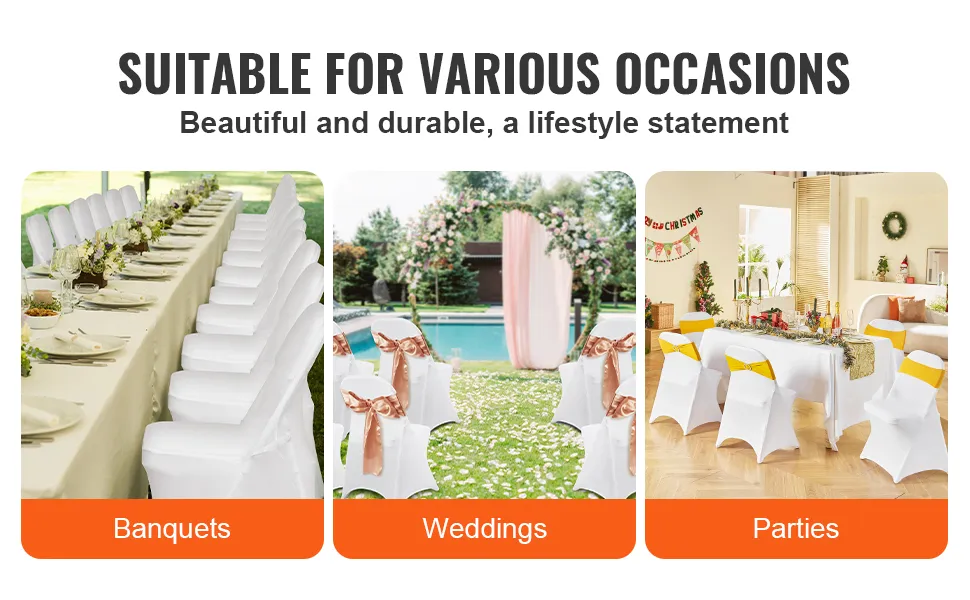Le fodere per sedie pieghevoli in spandex elasticizzato VEVOR conferiscono un tocco di eleganza a qualsiasi evento. Sono perfette per matrimoni, banchetti e feste. Il materiale elastico si adatta perfettamente alle sedie, creando un aspetto elegante. Queste fodere trasformano le sedie semplici in sedute eleganti. Sono semplici da installare e rimuovere. Ciò le rende comode per la pianificazione di eventi dell'ultimo minuto. Inoltre, le fodere aiutano a mantenere l'equilibrio durante l'evento. Sono consigliate a chiunque desideri migliorare l'arredamento del proprio spazio per eventi.