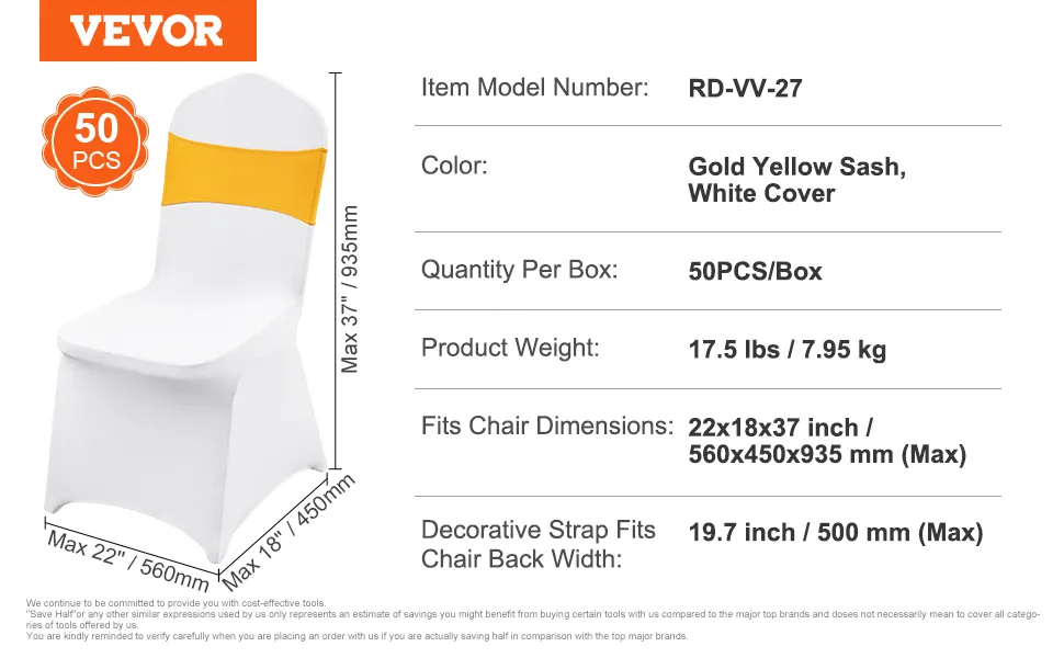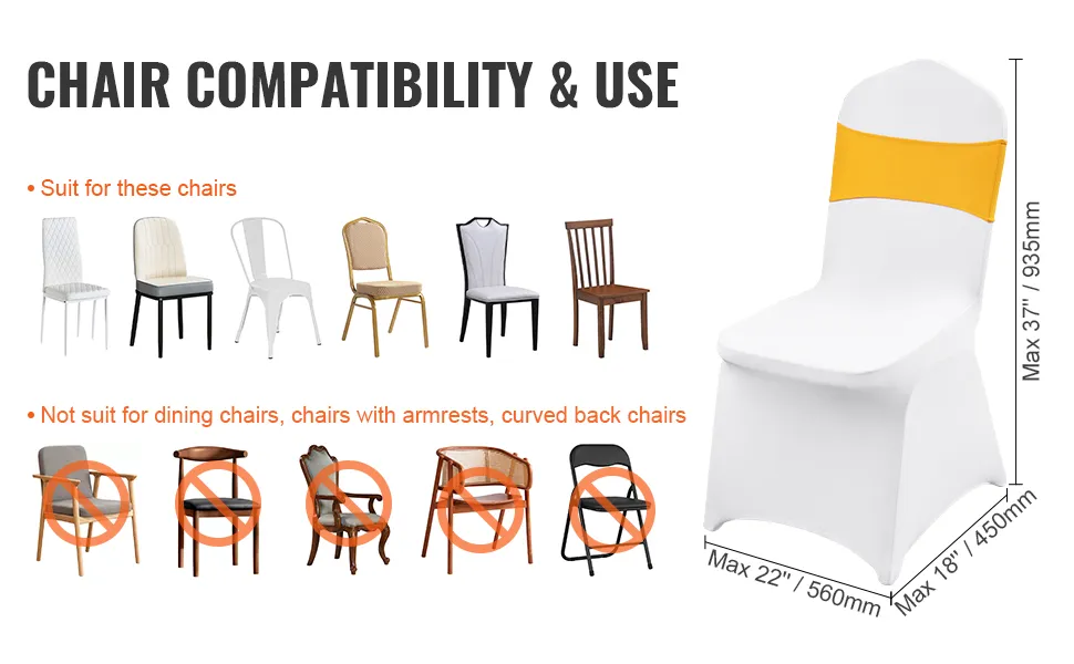 Queste fodere universali per sedie sono progettate per adattarsi alla maggior parte delle sedie senza braccioli, tra cui sedie da pranzo, sedie impilabili e sedie per banchetti. Il loro materiale flessibile assicura una vestibilità aderente e sicura, con dimensioni fino a 22x17,7x36,8 pollici, consentendo loro di adattarsi a una varietà di stili di seduta. Perfette per gli eventi, queste fodere per sedie migliorano l'aspetto del tuo locale offrendo un aspetto pulito e uniforme. Il semplice processo di installazione ti fa risparmiare tempo prezioso, mentre la loro natura riutilizzabile offre un rapporto costi-efficacia a lungo termine. Che tu ti stia preparando per un servizio fotografico, ospitando una riunione o organizzando un grande evento, queste fodere sono una scelta pratica ed elegante.