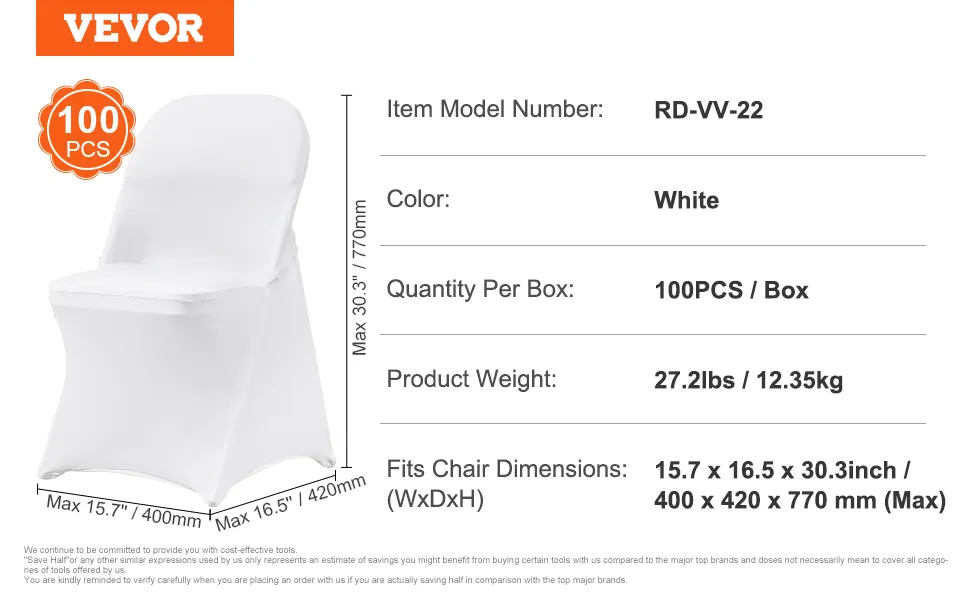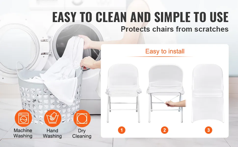 Le fodere lavabili e rimovibili VEVOR sono un'eccellente scelta per una facile manutenzione. Dopo l'evento, basta rimuoverle e lavarle in lavatrice per mantenerle fresche e pulite. Il tessuto in spandex è resistente, mantiene la sua forma e il suo colore vivace anche dopo numerosi lavaggi. Queste fodere riutilizzabili sono convenienti e ideali per eventi futuri, offrendo una soluzione pratica per gli organizzatori di eventi indaffarati. Il materiale ad asciugatura rapida garantisce tempi di preparazione minimi, risparmiando sia fatica che denaro rispetto alle costose opzioni di noleggio.
