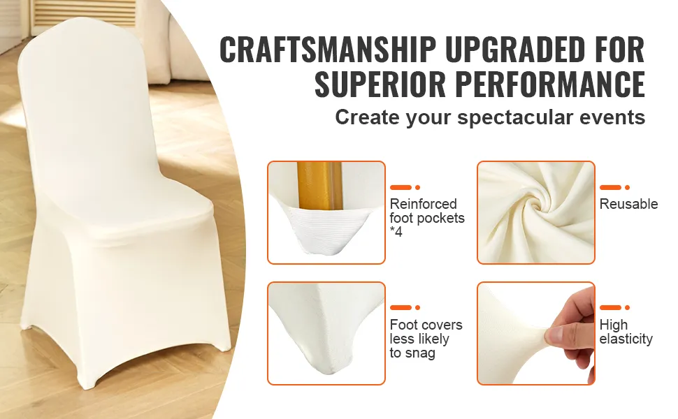 Le fodere per sedie in spandex elasticizzato VEVOR sono realizzate in materiale durevole e antistrappo. Ciò garantisce che mantengano il loro aspetto e le loro prestazioni anche con un uso ripetuto. Il materiale è abbastanza spesso da nascondere il colore originale delle sedie, creando un aspetto uniforme e professionale. Inoltre, il tessuto confortevole migliora l'esperienza degli ospiti offrendo al contempo un aspetto elegante e moderno. Queste fodere sono progettate per durare, il che le rende una scelta affidabile per più eventi, garantendo che le tue sedie rimangano eleganti e protette.