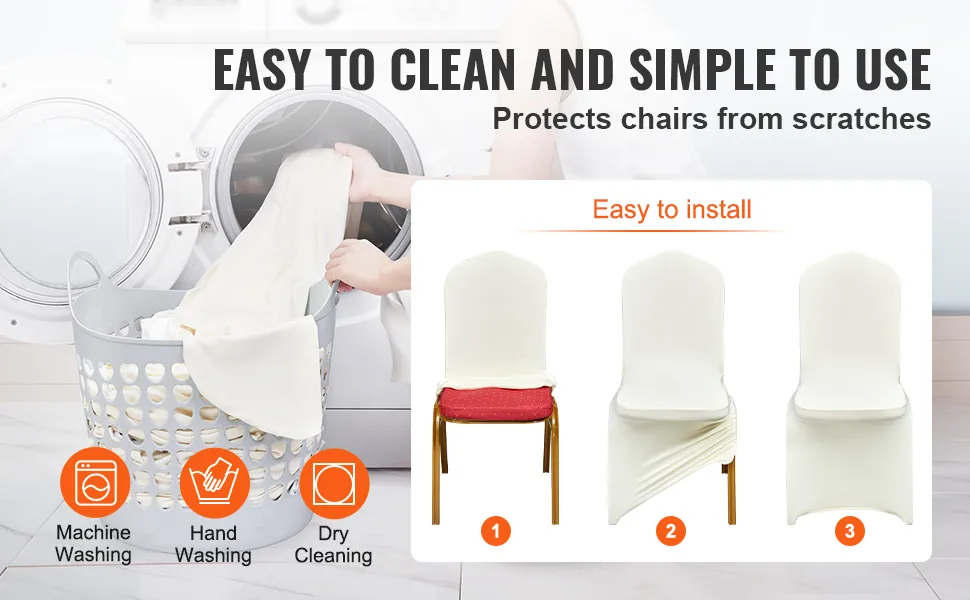 Le fodere per sedie in spandex elasticizzato VEVOR sono realizzate con fodere protettive lavabili, perfette per gli organizzatori di eventi che cercano fodere affidabili e durevoli. La loro natura riutilizzabile le rende una scelta economica per chiunque organizzi più eventi. Dopo l'uso, possono essere lavate e riutilizzate più volte senza perdere la loro forma. Ciò le rende pratiche ed economiche per qualsiasi occasione, in quanto possono resistere all'usura dell'uso frequente. Mantieni pulito ed elegante il tuo spazio per eventi con queste fodere facili da mantenere.