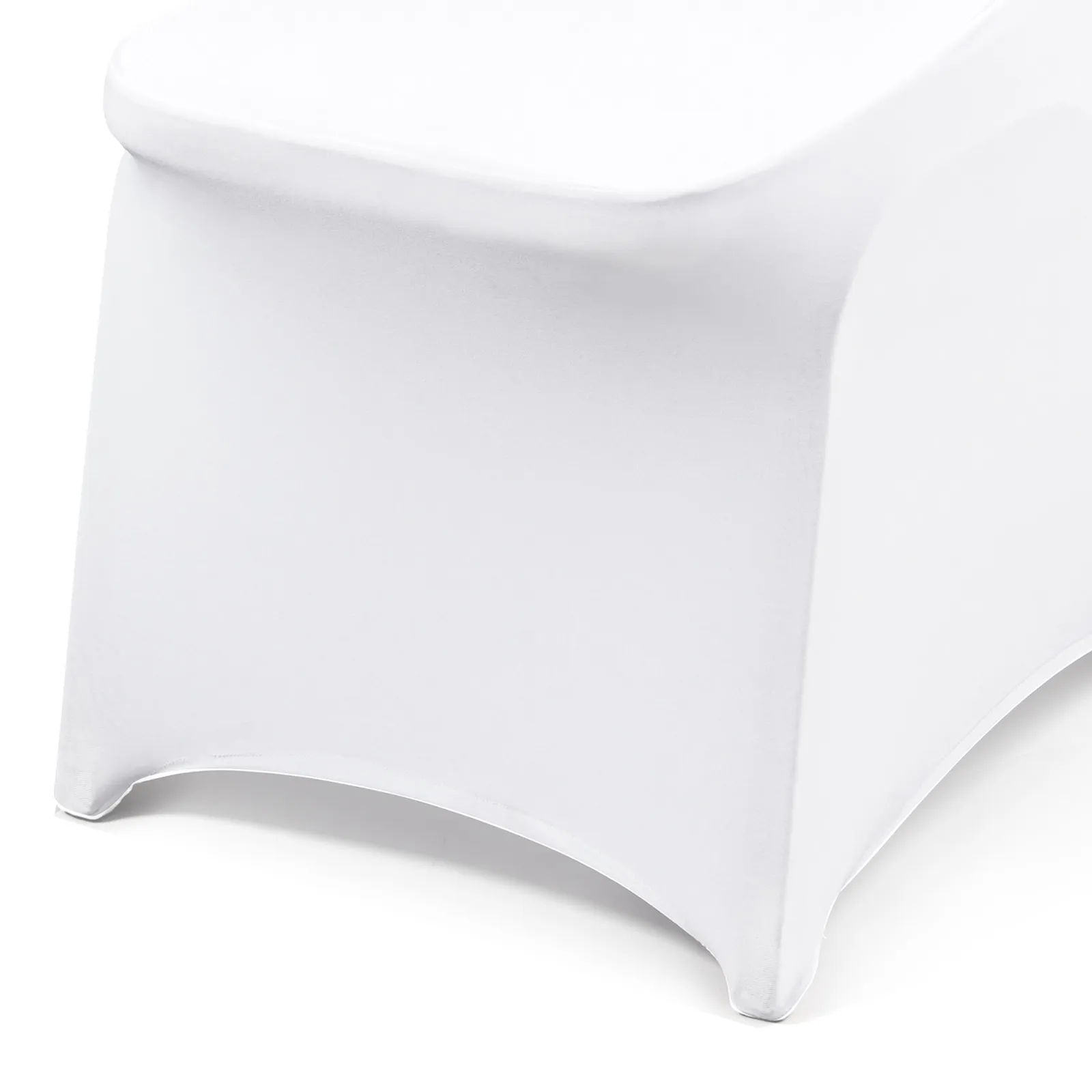 High-quality material: Color: white; Quantity per carton: 30 pieces; Material: 95% polyester fiber and 5% elastane. Durable fabric and high-quality seams ensure added comfort and elasticity. Universal elastane folding chair covers protect your chairs from spills, pet scratches, everyday stains, and tears, making them ideal for indoor and outdoor events.