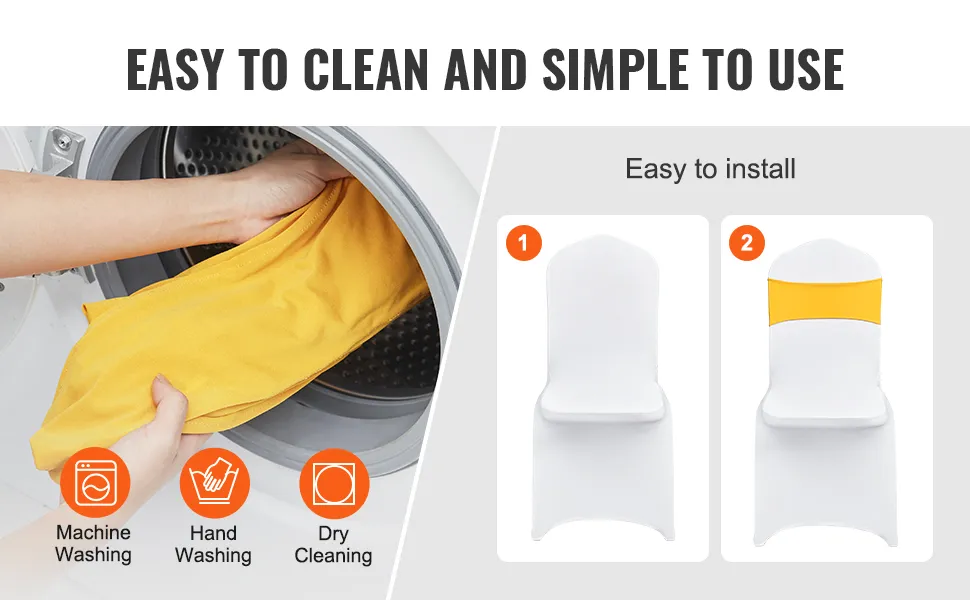 Le fasce VEVOR sono super facili da installare, grazie al loro materiale estensibile in spandex. Sono la scelta perfetta per i decoratori di eventi che hanno bisogno di allestire rapidamente. Con l'aiuto di fasce elastiche per sedie, puoi coprire più sedie in pochi minuti, senza bisogno di strumenti o passaggi complicati. Le fasce sono dotate di una fibbia rotonda che le fissa in posizione, assicurando che rimangano in posizione per tutta la durata dell'evento. Questo semplice processo di installazione consente di risparmiare tempo e fatica preziosi, rendendo l'allestimento del tuo evento senza problemi.