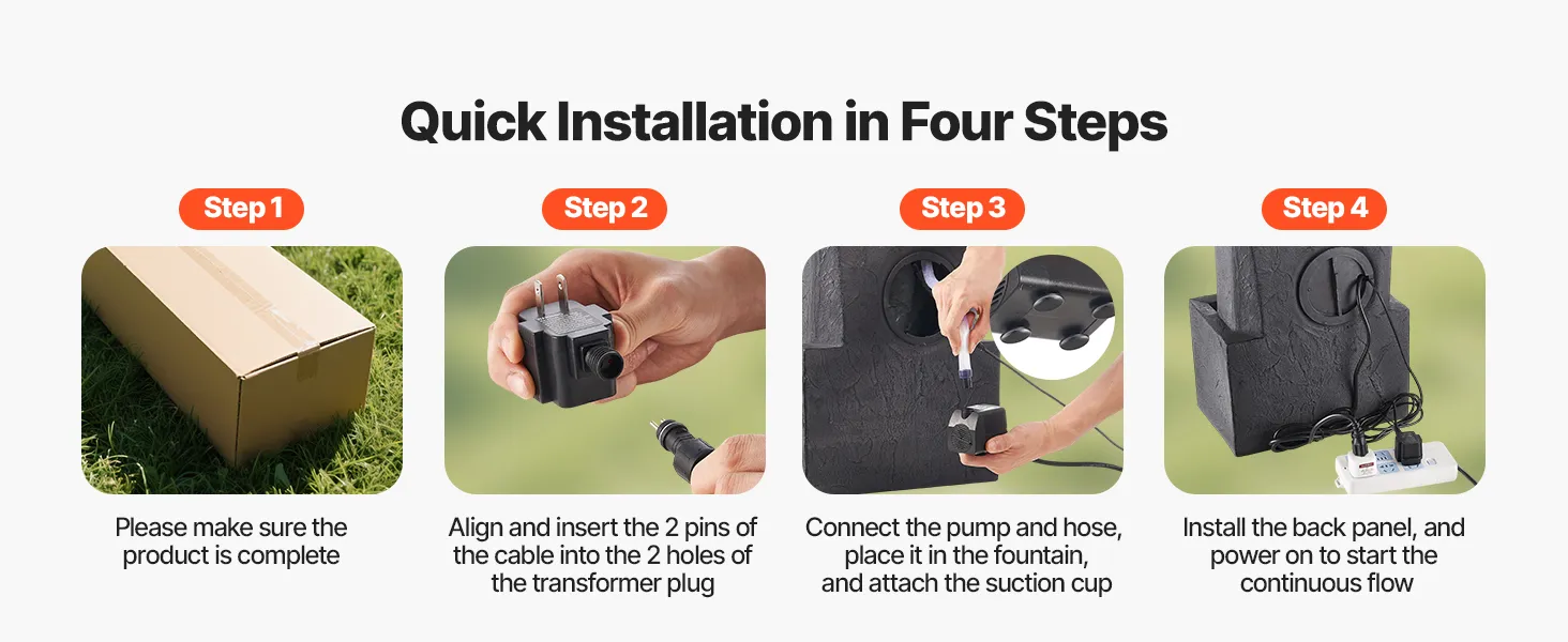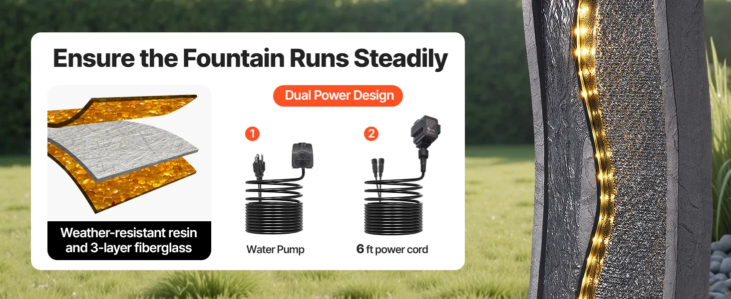 Materiali resistenti: realizzata in resina resistente alle intemperie e fibra di vetro a triplo strato, questa fontana resiste a vento, luce solare e temperature estreme. Non scolorisce e non si crepa, rendendola adatta a giardini, cortili e patii