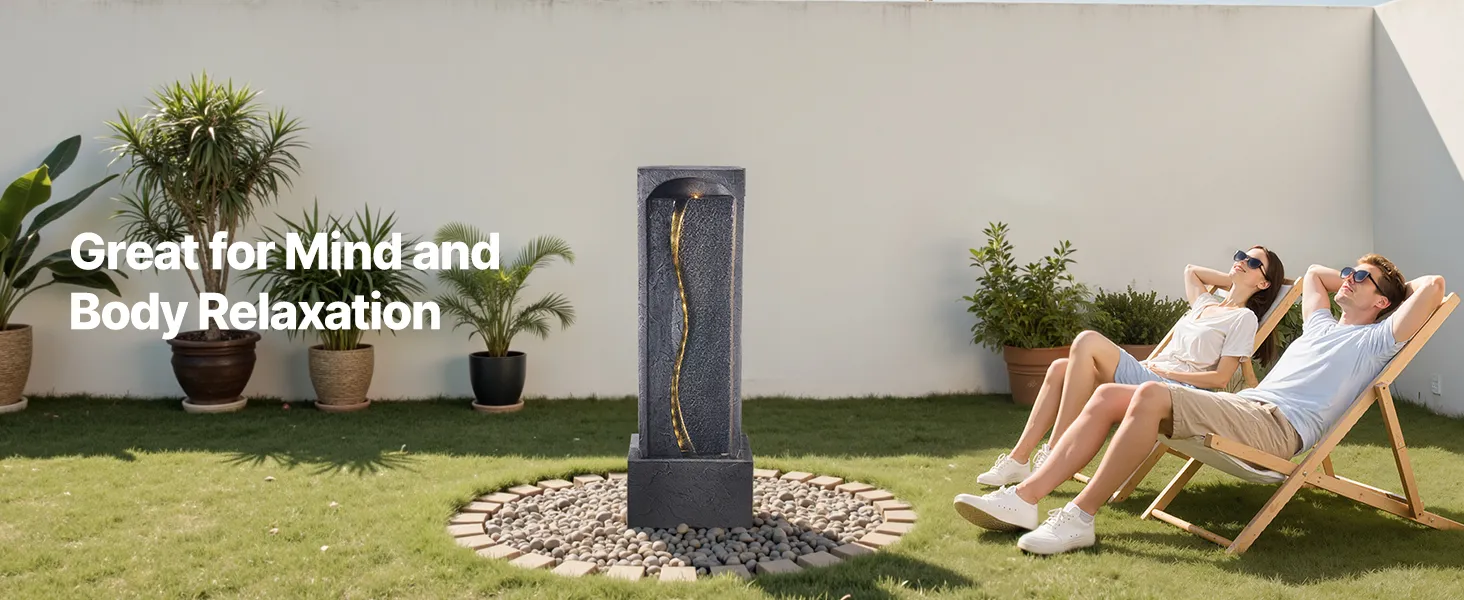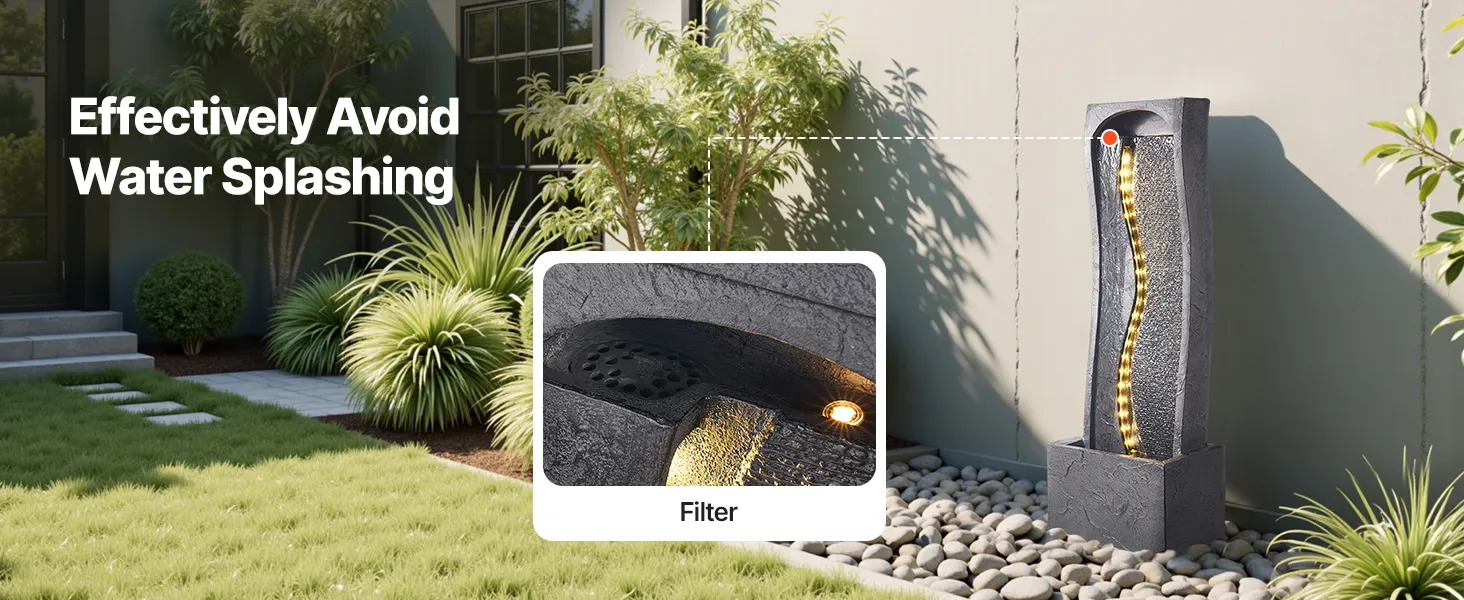 Suoni rilassanti: il design artistico di questa fontana da giardino riproduce il suono di una vera cascata, creando un flusso delicato e rilassante. Ideale per la meditazione all'aperto, le riunioni di famiglia o l'arredamento d'interni, favorisce il rilassamento e la pace della mente