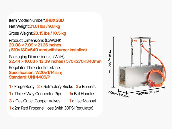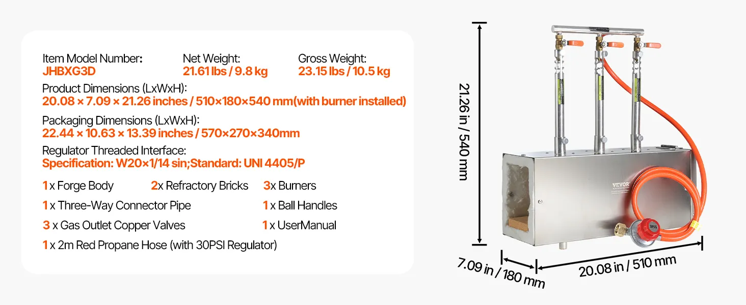VEVOR Forgia a Gas Propano Portatile 3 Bruciatori Temperatura max 1427 ℃, Fucina a Propano per Fabbricazione Forgiatura di Coltelli, Forgia a Gas Portatile Attrezzatura per Forgiatura dei Metalli