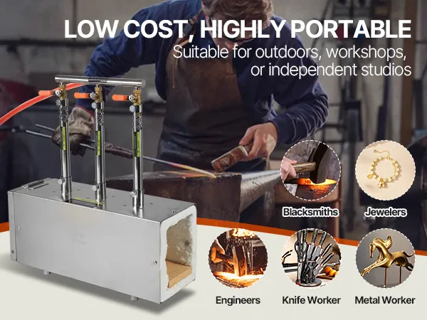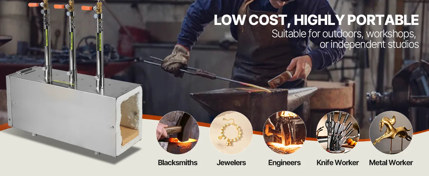 La fucina a gas propano per metalli soddisfa una varietà di esigenze di forgiatura, che si tratti di coltelli, punte, braccialetti, viti, forbici e altro ancora, soddisfacendo diverse esigenze.
