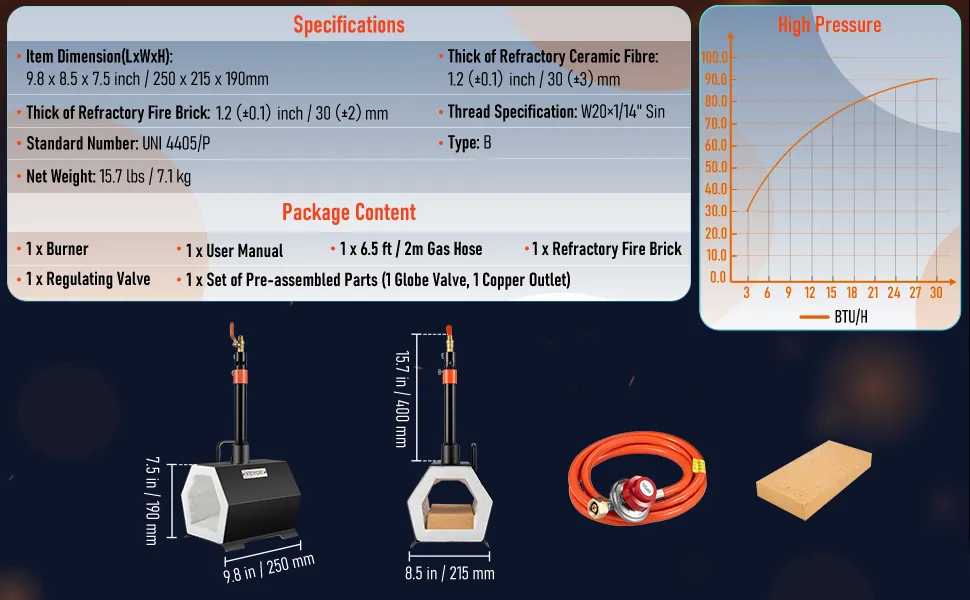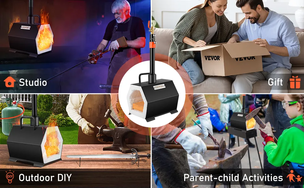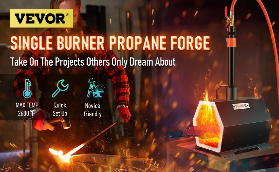 • Costruzione Integrata: la forgia a propano è realizzata in lamiera a freddo di alta qualità e il bruciatore è realizzato in acciaio 45#, che lo rende più resistente e duraturo.