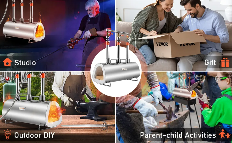 Costruzione Integrata: la forgia a propano è realizzata in lamiera a freddo di alta qualità e il bruciatore è realizzato in acciaio 45#, che lo rende più resistente e duraturo.
