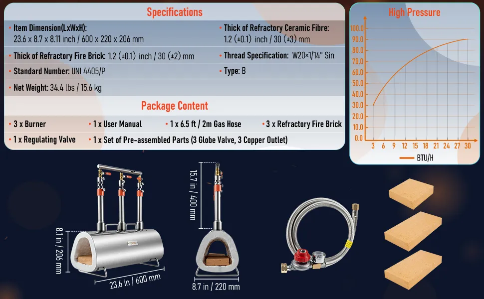 Un forgiatore con un bellissimo colore arancione rende l'aspetto più attraente. Con un migliore flusso d'aria, ha più ossigeno per migliorare le sue capacità di combustione. La struttura superiore garantisce un migliore effetto e durata. È anche sicuro utilizzare il prodotto per lungo tempo.